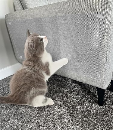 Reliable & Residue-Free Protection – Unlike other products, our couch cat scratch protector offers superior defense without leaving behind sticky residue. The strong adhesive backing ensures secure placement while being easy to remove, making it the ideal cat protection for furniture to keep your home scratch-free.