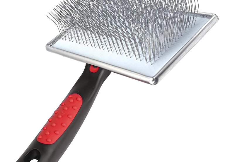 EXTRA LONG STAINLESS STEEL PINS – THE ULTIMATE SLICKER BRUSH FOR DOGS – Designed with extra-long stainless steel pins, this dog slicker brush penetrates deep into the coat to remove loose fur, dirt, and debris. Ideal for dog brushes for grooming, it works perfectly as a dog brush for long-haired dogs, doodle brush for dogs, and even as a long hair cat brush, keeping your pet’s coat smooth and tangle-free.